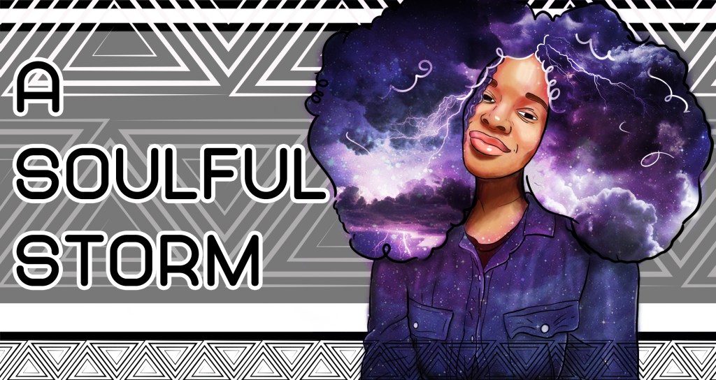 For the brief she asked for an illustrative piece that would explore the idea of a Soulful Storm, the inner workings of her mind and the Zambian heritage that she so proudly stands for. I explored this through the idea of Afro hair representing soul and storm clouds at the same time. The lightning then showing how dangerous or potent some thoughts or concepts can be.